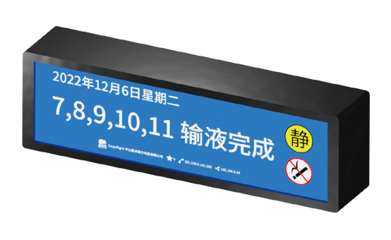 实时显示并播报病区内各种呼叫 信息。让医护人员在病区的各个地方, 都能清晰地了解到病房内的情况。 科室信息、日期时间信息实时更新。 科室呼叫信息。 科室通告信息。